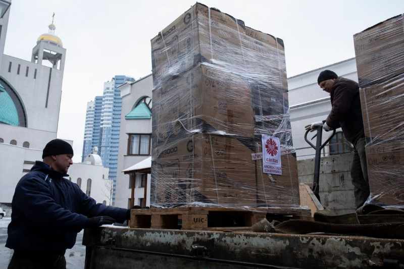 На території Патріаршого центру УГКЦ у Києві відбулася передача першої партії гуманітарної допомоги, зібраної благодійною організацією «Карітас» архидієцезії Кракова у межах акції солідарності, ініційованої кардиналом Ґжеґожем Рисем на прохання Блаженнішого Святослава.