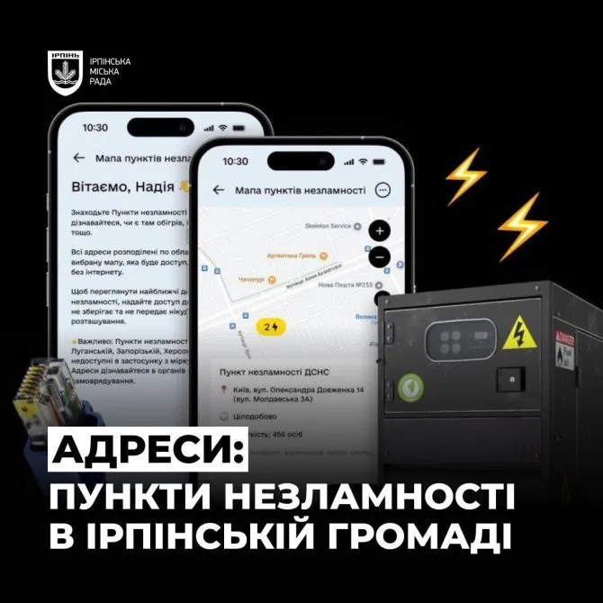 В.о. Ірпінського міського голови — секретар ради Анжела Макеєва нагадала, що в Ірпінській громаді працюють 6 пунктів незламності, де можна зігрітися, зателефонувати рідним, випити чаю та зарядити гаджети.