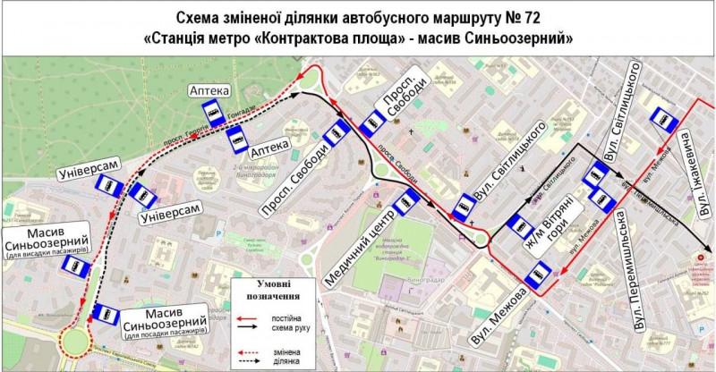 Із 24 квітня внесуть зміни в роботу автобусного маршруту № 72 «Станція метро „Контрактова площа“ — проспект Свободи». Зміни запроваджують для покращення транспортного обслуговування пасажирів. Про це повідомляють у КП «Київпастранс».