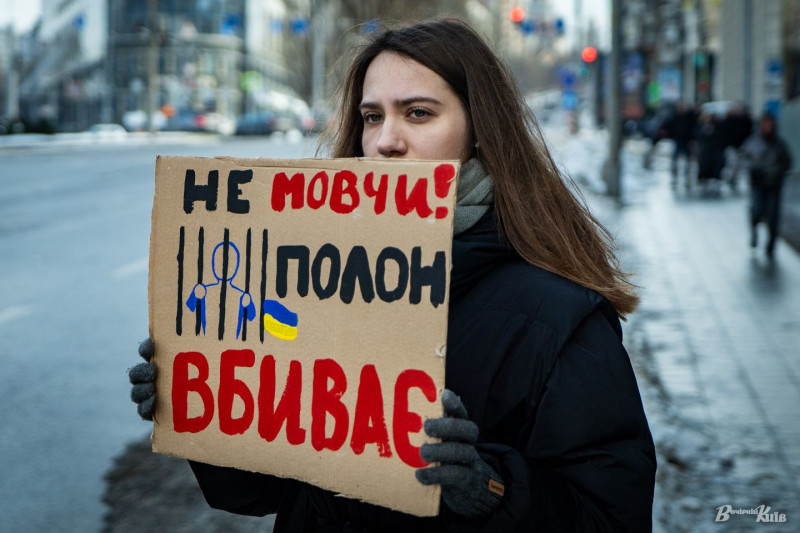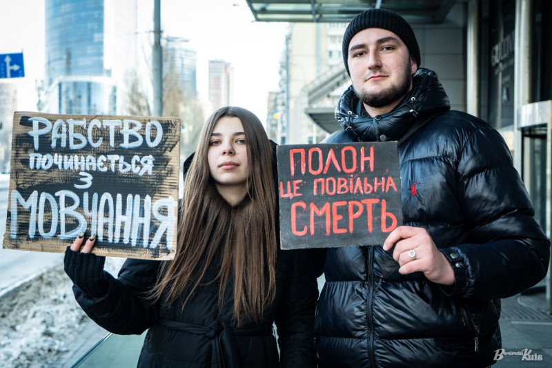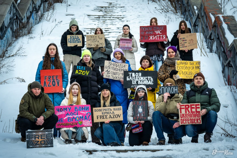 22 лютого у Києві поблизу станції метро «Палац Спорту» пройшла щотижнева акція на підтримку військовополонених та зниклих безвісти.