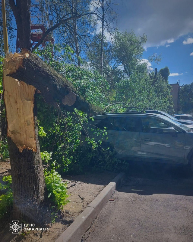 За даними ДСНС, у Черкасах загинула людина — дерево впало на квадроцикл під час руху ще один чоловік загинув на Закарпатті через падіння дерева.