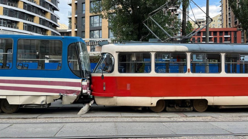 Масштабна ДТП у Шевченківському районі Києва: зіткнулися трамваї. Є травмовані, понівечені автівки Доповнено 6 серпня, 12:42