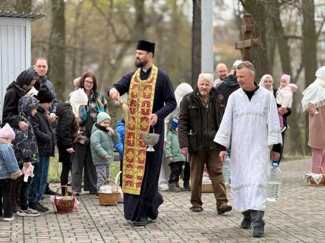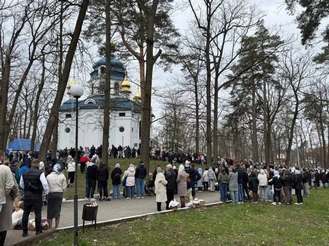 В Ірпені відзначили Великдень. Мешканці освячували кошики у храмах громади. Зокрема, десятки людей зібралися у храмі Святителя та Чудотворця Миколая ПЦУ.