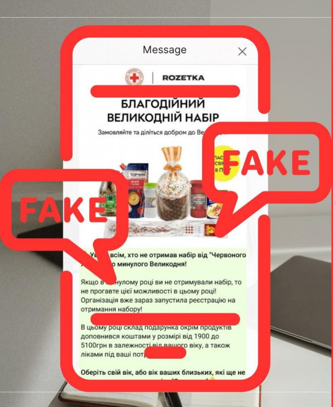 У мережі поширюється фейкова інформація про нібито «великодні набори» з грошовими виплатами від Товариство Червоного Хреста України у партнерстві з ROZETKA.
