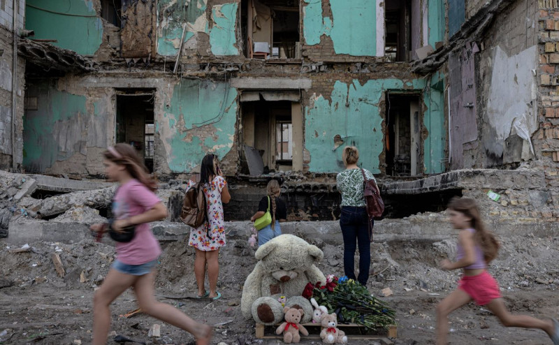 Імпровізований меморіал жертвам російського ракетного удару по житловому будинку в Дарницькому районі Києва; 29 серпня. Finbarr O’Reilly The New York Times
