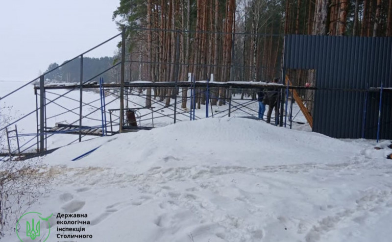 «Під час огляду встановили, що на зазначеній території розташовані зелені насадження (сосна звичайна). З північної та південної сторони територія огороджена металевим парканом, який встановили до урізу Київського водосховища, чим обмежили вільний доступ громадян до водного об’єкта. У межах 100 метрів від урізу води проводяться будівельні роботи зі спорудження об’єктів невідомого функціонального призначення. Також виявлено пні зрізаних дерев. Окрім цього, на території проведено роботи з берегоукріплення Київського водосховища орієнтовною довжиною близько 200 метрів шляхом монтування бетонної підпірної стінки та бетонного спуску для плавзасобів (елінг)», — повідомляє Дерекоінспекція Столичного округу.