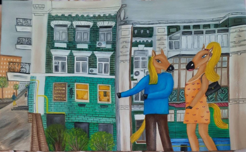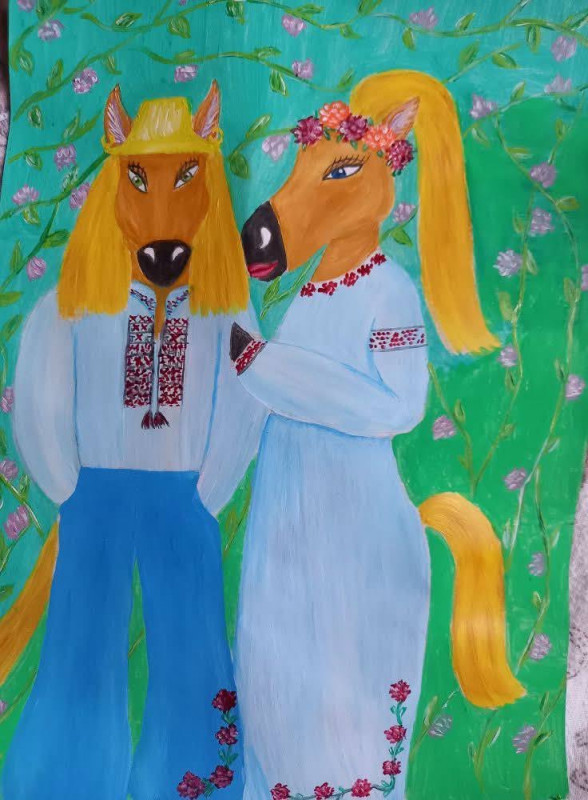 — Так, справді, це мій бренд м’якої іграшки. Вони наче як пара, яка живе власним життям. Інколи переношу їх на свої картини. Нещодавно закінчила роботу, де Арнольд та Луческа прогулюються Києвом. Поки що це початок цієї серії м’яких іграшок. Як й у звичайному житті Арнольд та Луческа мають отримати одежу, все людські принади — будинок, айфони, відпочинок, роботу. Хотіла би створити такий мікросвіт тварин-людей, у якому мої персонажі будуть почуватися як люди, будуть добрими, гарними кониками.