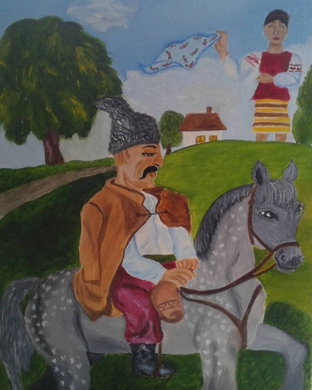 — Арнольд — цей образ надихнув Арнольд Шварценегер. Міцний, сильний, на захисті честі й добра. А Луческа — це з особистої уяви. Просто гарне жіноче ім’я, навіть, якщо я його й вигадала. Загалом так виходить, що образи, які я створюю, рідко коли зазнають змін під час роботи. Спочатку я «бачу» якою вона буде, а після, все, що лишається, відобразити свою уяву на полотні. Фактично, пам’ять «нагадала» цих коників із минулого, дитинства, так само й ілюстрації або картини. Інколи на це уходять часи та дні, але це моє справжнє життя. Таке, яке мені подобається.