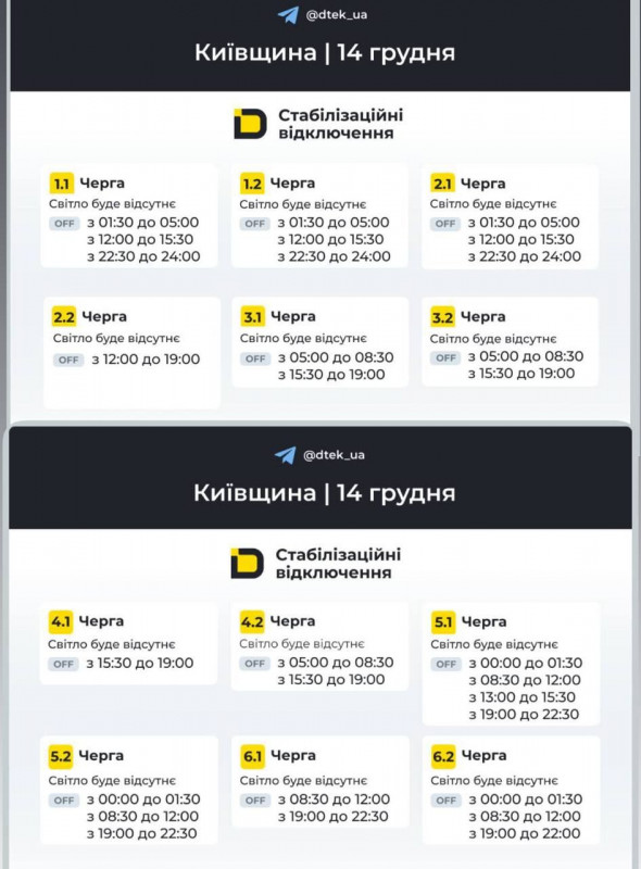 В ДТЕК опублікували графіки для Києва та Київської області.