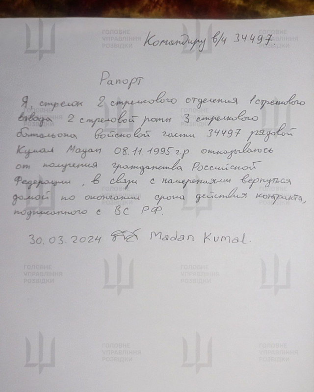 За даними розвідки, чоловік підписав контракт із російською армією 16 жовтня 2023 року в Москві, погодившись на чотирирічну службу.
