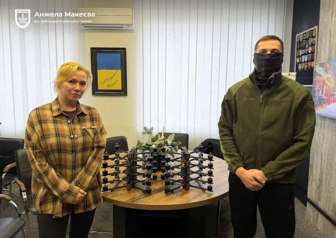 «Чергова партія добрих дронів вирушає виконувати бойові місії. Сьогодні в міській раді передала від Ірпінської громади 10 FPV-дронів з оптоволоконною котушкою для потреб Головного управління розвідки», — розповіла Анжела Макеєва.