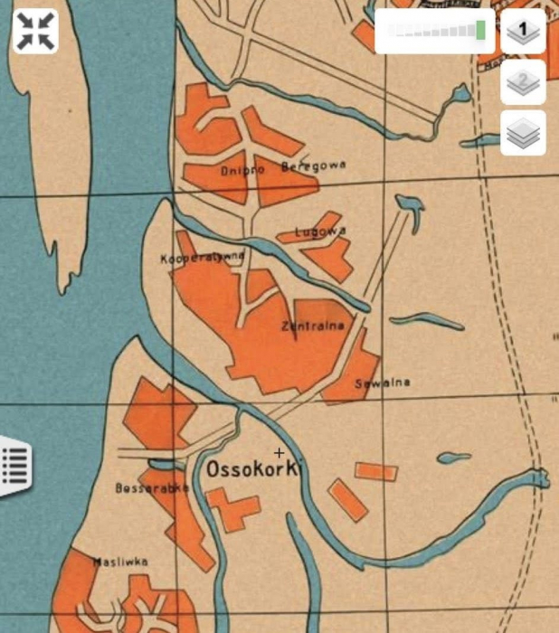 Як інформує Перов, селище Оскорки на Лівому березі Києва було засноване близько 1799 року. За даними перепису населення 1859 року, його населення складало вже 739 мешканців, було 136 будинків та 1 церква Церква збудована на 10 років пізніше на честь Іонна Богослова, була деревʼяна — це був основний будівельний матеріал тут. У проміжку між 1932 та 1935 вона була зруйнована. А ось ще один деревʼяний будинок із селища на місці сучасного мікрорайону Києва зберігався й до сьогодні.
