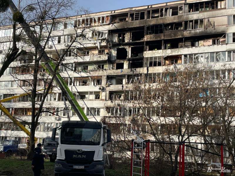 Російський ударний безпілотник влучив у багатоповерховий житловий будинок на Русанівці, спричинивши руйнування з п’ятого по восьмий поверхи. Унаслідок атаки загинули двоє цивільних, ще десятки людей опинилися у небезпеці.