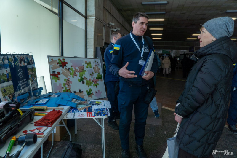 Протягом дня у вестибюлі станції метро «Золоті ворота» команда HALO Ukraine знайомили усіх охочих з основними правилами мінної безпеки. Ознайомлення проходило в інтерактивному форматі — можна було скласти тематичний пазл, приміряти захисне спорядження демінерів — екран для обличчя та жилет — і сфотографуватися на пам’ять.