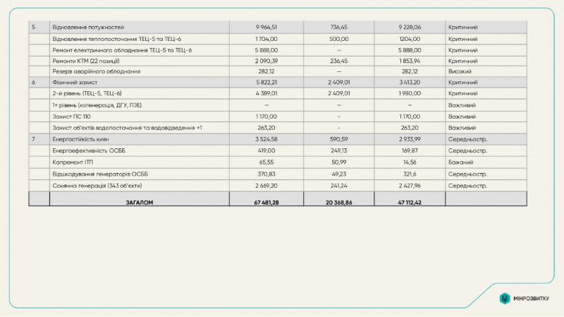 У відкритій частині плану зібрані ключові пропозиції щодо посилення захисту та резервування критичної інфраструктури Києва — зокрема в енергетиці, теплопостачанні та водозабезпеченні.