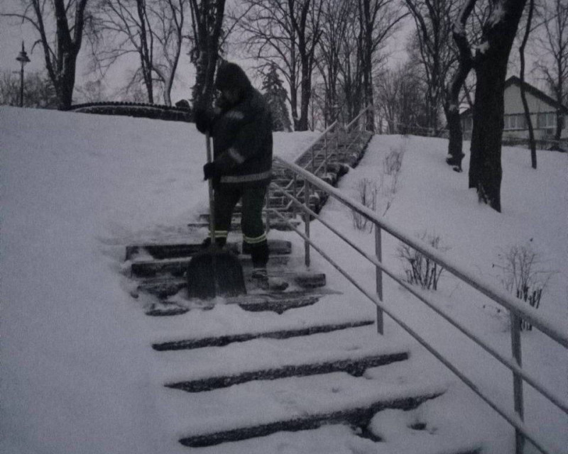 Також задіяні 408 працівників у складі 61 бригади з ручного прибирання. Дорожники очищають від снігу та обробляють протиожеледними засобами зупинки, вузькі тротуари, сходи, підходи до наземних і підземних переходів та інші пішохідні зони, де не може працювати малогабаритна снігоприбиральна техніка.
