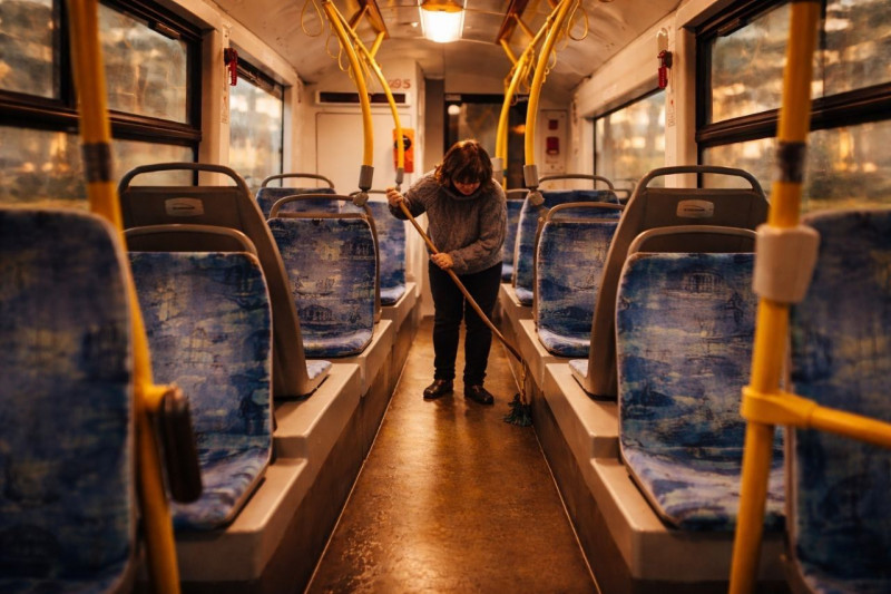 Технічне обслуговування кожного вагона відбувається один раз на тиждень, згідно з графіком. У денну зміну в рухомому складі виконують повне зовнішнє та внутрішнє очищення. Вагони миють у автоматичній мийній установці зі щітками. Після цього працівники проводять ручне прибирання в салоні: миють підлогу, протирають панелі, підвіконня, поручні та кабіну водія.