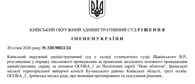 Київський окружний адміністративний суд відмовив Валентині Кравченко у поновленні статусу депутатки Ірпінської міськради. 22 квітня 2024 року партія «Нові Обличчя» відкликала її з депутатів. Кравченко оскаржила це рішення в суді, однак позов не задовольнили. Суд визнав відкликання законним.