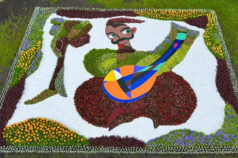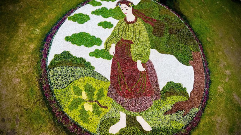 Квіткова композиція «Катерина» за мотивами картини Т.Шевченка, яку висадили столичні комунальники до Дня Києва. КМДА
