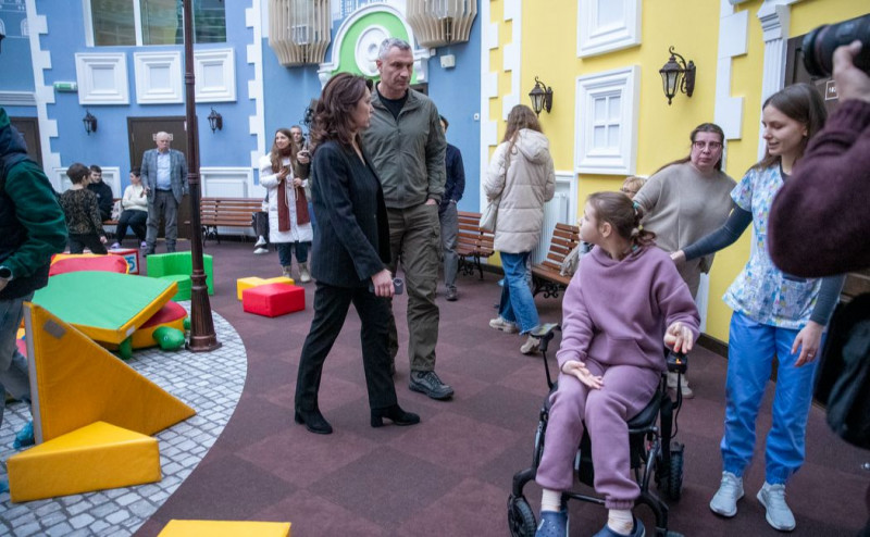Віталій Кличко, мер Києва та заступниця голови КМДА Марина Хонда у центрі реабілітації дітей з інвалідністю. Фото: КМДА