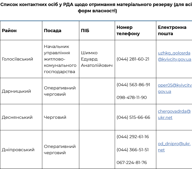 Як приклад: для ліквідації значних пошкоджень внаслідок ворожої атаки 14 листопада цього року за зверненнями Подільської, Деснянської, Шевченківської районних в місті Києві державних адміністрацій, керуючої компанії з обслуговування житлового фонду Дніпровського району, ТОВ «Львівський квартал», ОСББ «Палладіна 22», ЖБК «Обчислювач-14», КП з експлуатації та ремонту житлового фонду «Житло-Сервіс» з матеріального резерву міста спрямовано засобів загальногосподарського призначення на суму понад 344 тис. грн.