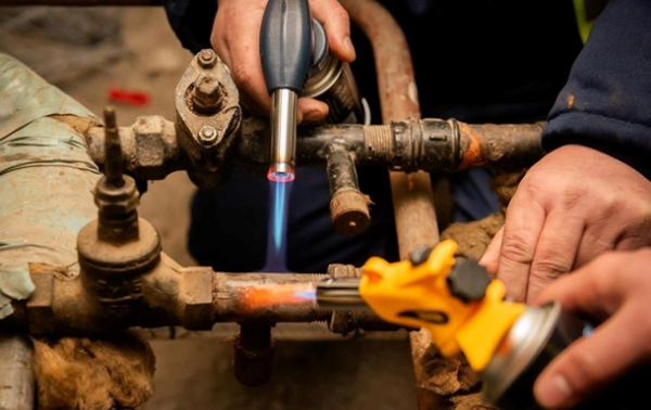 Фото: Міністерство розвитку громад та територій України Ремонтники відігрівають замерзлі стояки опалення