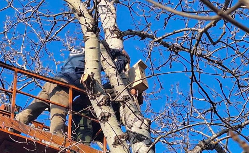 Цієї весни у пернатих мешканців столиці буде ще більше затишних місць для гніздування. Столичні зеленбудівці встановили майже 60 нових будиночків для гніздування птахів.