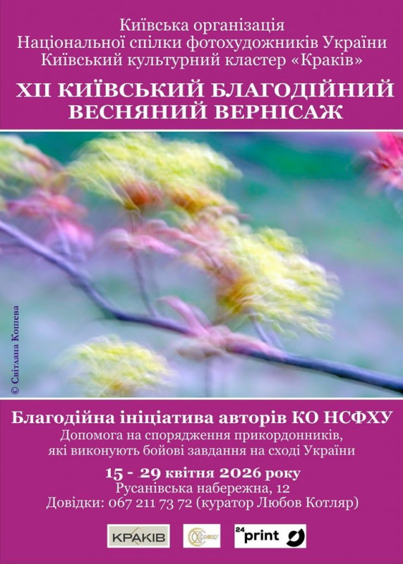 15 квітня 2026 року У КК «Краків» відкриється ХІІ «Київський благодійний Весняний вернісаж», що продовжує традицію київських фотовернісажів — «Зимового», «Літнього», «Осіннього» та знову «Зимового», представляючи роботи на теми ландшафту, водного пейзажу, весняного міста, природи, макро, жанрової фотографії та фотоарту.