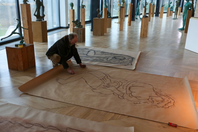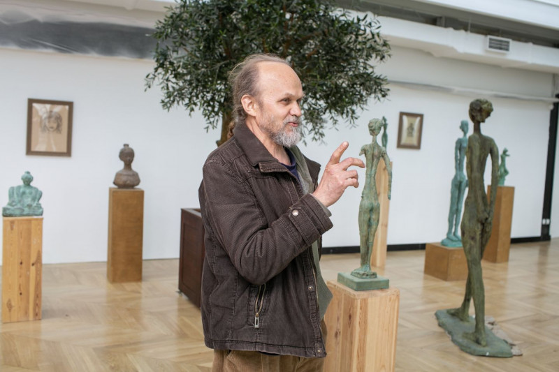 Олександр Сухоліт у просторі своїх скульптур.