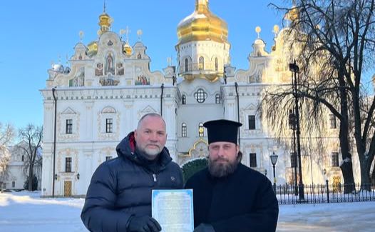 Генеральний директор Нацзаповідника «Києво-Печерська лавра» та настотель монастиря «Києво-Печерська лавра» з документом мінкульту про передачу двох корпусів. Фото: НЗ «Києво-Печерська лавра», фейсбук