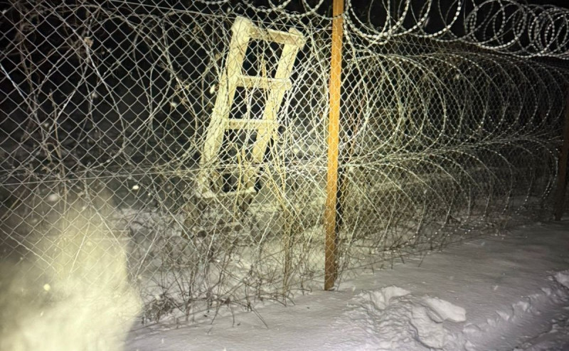 Порушник за допомогою драбини переліз через загороджувальний паркан. Фото: ДПСУ