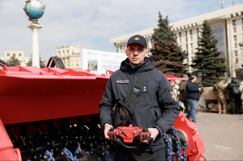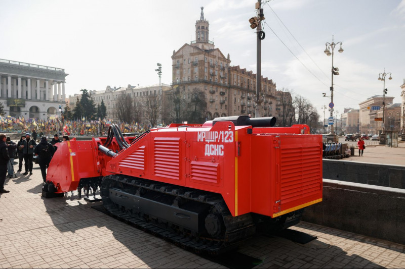 У день презентації 20-тонну машину вперше показали у відкритому доступі в центрі столиці на Майдані — перед тим, як вона знову вирушить на розмінування. Організатори нагадали, що Україна залишається однією з найбільш замінованих країн світу, сапери ДСНС і ДССТ вже очистили сотні тисяч гектарів української землі, 69 машин DOK-ING в Україні допомогли розмінувати понад 30 млн кв. м територій.