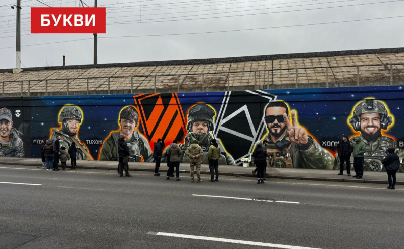 На Дарницькому шосе столиці відкрили мурал присвячений загиблим захисникам України — бійцям 1-ї роти протитанкового батальйону 3-ї Окремої штурмової бригади.