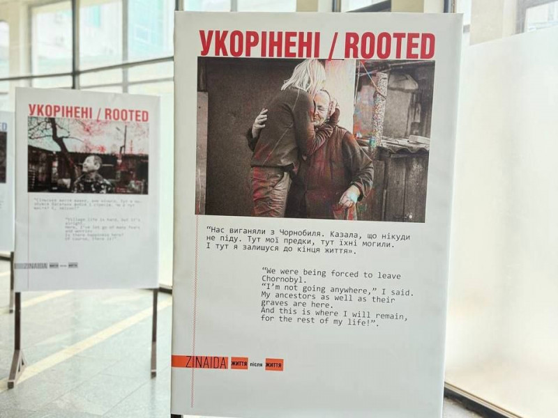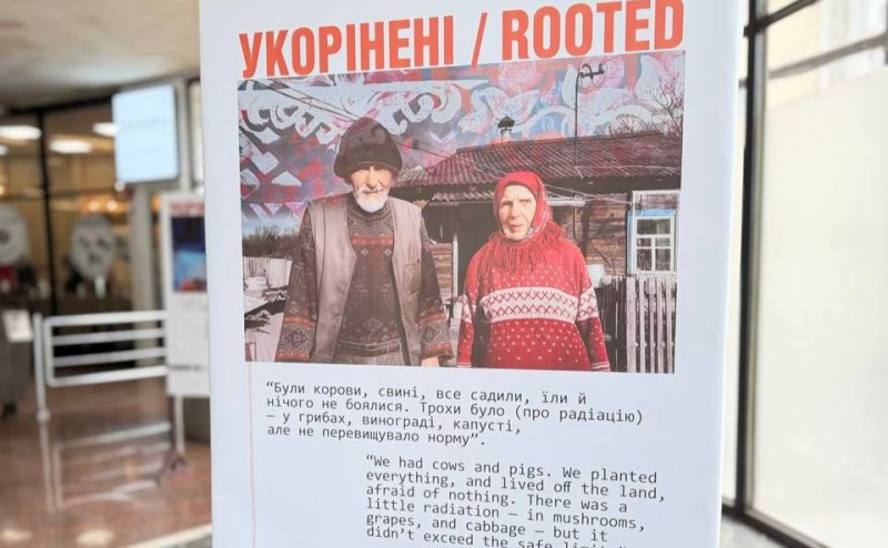 У центрі виставки — робота «Укорінені», яка розповідає історію людей, які лишилися в селах зони відчуження, про їхній спосіб життя та досвід проживання після трагедії.