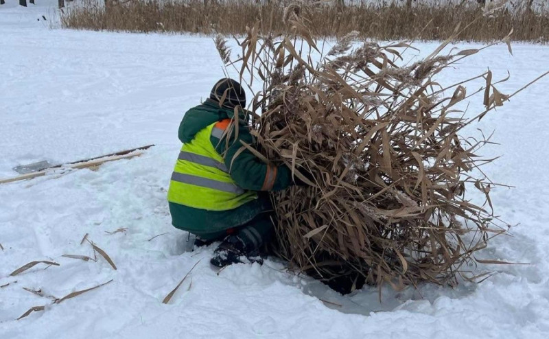 Щоб ополонки не замерзли, їх закривають очеретом. Фото: КП УЗН Голосіївського району