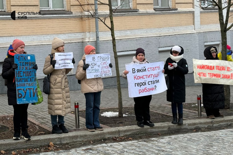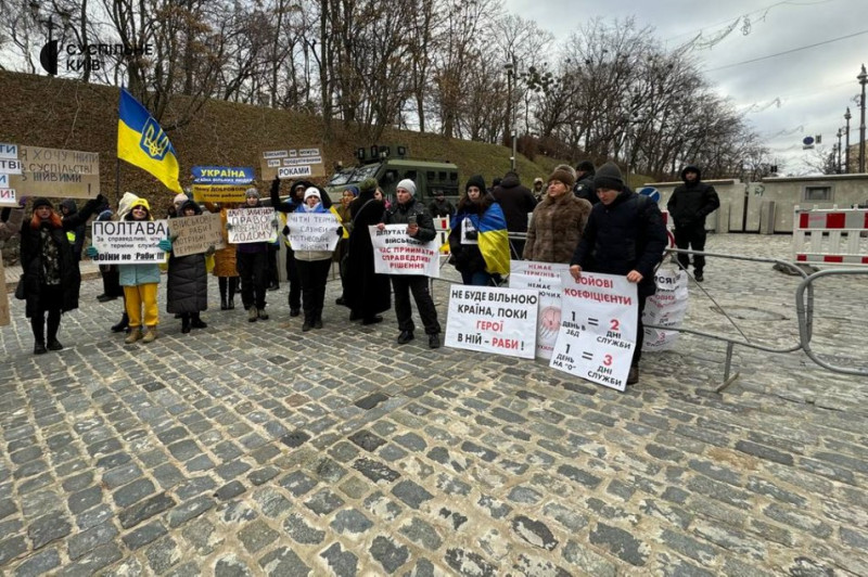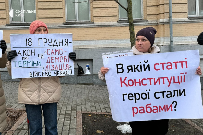 Акція за чіткі терміни служби біля Верховної ради України. Київ, 18 грудня 2024 року. Суспільне Новини/Нікіта Галка