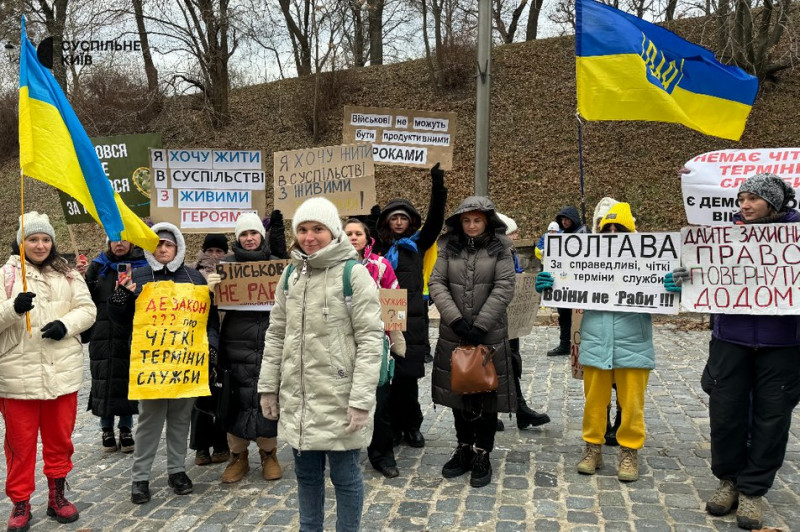 «Кінця краю війни не видно, а їх стає усе менше»: пікет за чіткі терміни служби для мобілізованих відбувся у Києві