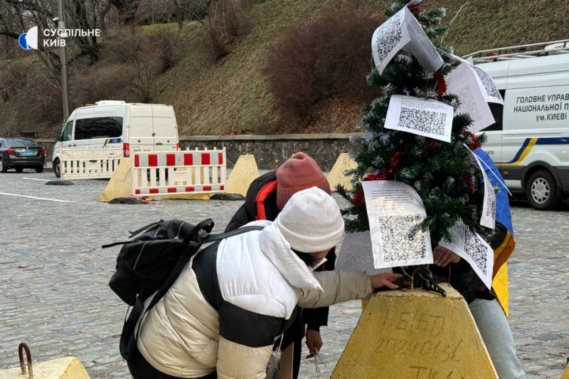 Учасники акції також встановили ялинку із QR-кодами, які ведуть на новини різних ЗМІ, де йдеться про заяви посадовців, які обіцяли законопроєкт про чітки терміни служби.