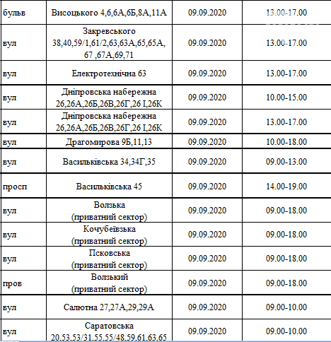 Предлагаем ознакомиться с графиком отключений электроэнергии в Киеве с 7 по 13 сентября.