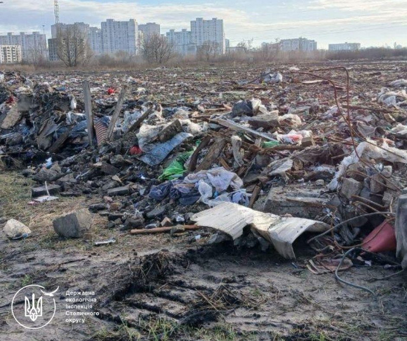 «Під час огляду території встановлено, що вантажні автомобілі марок Volvo та МАЗ здійснювали розвантаження будівельних відходів у заздалегідь викопані котловани та на прилеглу ділянку. Масштаби виявленого свідчать про формування несанкціонованого місця захоронення відходів», — повідомили у Держекоінспекції.