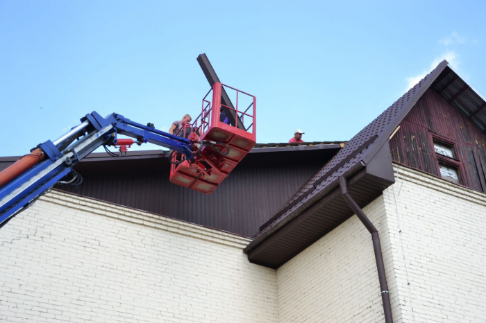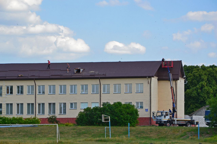 «До лета школа находилась под временным мембранным накрытием, что защищало классы от затекания и разрушения. Сейчас его снимают и накрывают школу металлочерепицей. Вместе с тем монтируют ливнеприемники, снегозадержатели и новое ограждение», – рассказал Сапожко.