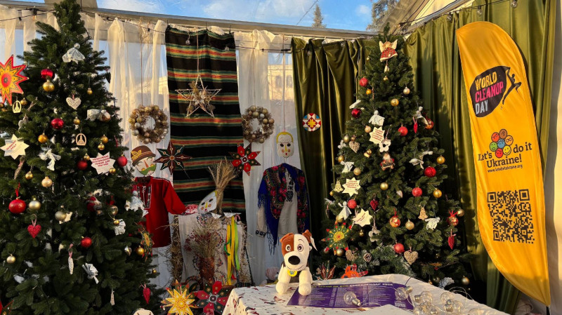 Подарунки збираються безпосередньо під ялинками на локації Let’s do it Ukraine всередині шатра (від входу наліво).