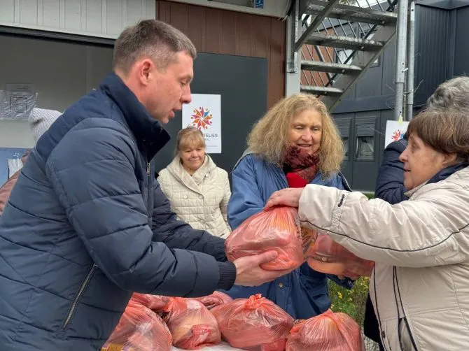Пані Регула та пан Джамал відвідали мешканців модульного містечка «Ластівка», привізши із собою 115 продуктових наборів для людей похилого віку. Кошти на гуманітарну допомогу зібрали спільно з іншими небайдужими громадянами у Швейцарії.