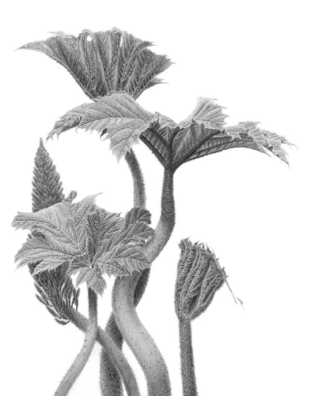«Гуннера піхвова”Gunnera manicata Linden ex Delchev.Графітні олівці на папері. Малюнок Ганни Гудімової