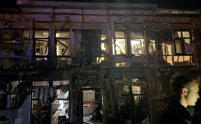 Ворожий дрон влучив в готель. Фото: Одеська МВА