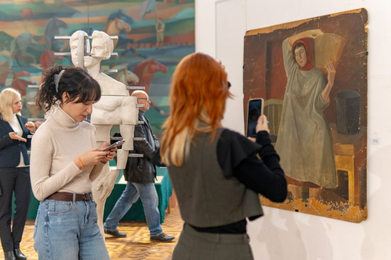 В експозиції представлені рідкісні роботи студентів 1920–1930-х років із колекції Художнього музею НАОМА, які дивом збереглися завдяки сміливості співробітників інституту. У часи сталінських репресій їх таємно винесли з майстерень і сховали під сценою актової зали, ризикуючи власним життям. Ці твори пролежали десятиліттями серед старих плакатів і транспарантів, щоб повернутися у культурний простір лише тепер.