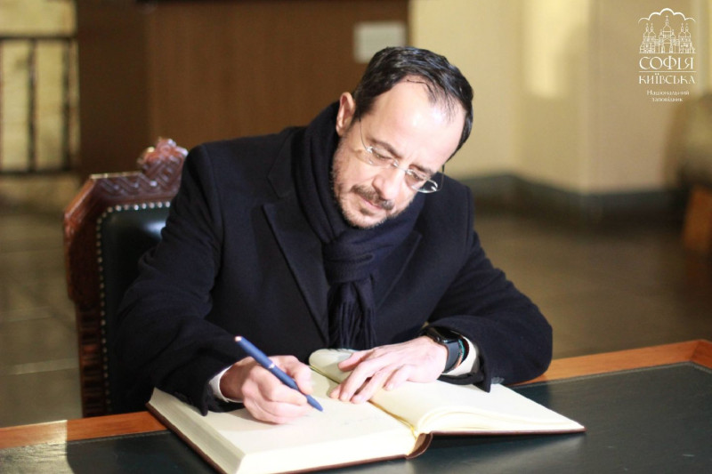 Нікос Христодулідіс залишив відгук у Книзі почесних гостей Софії Київської.