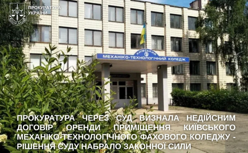 Прокуратура через суд визнала недійсним договір оренди приміщення Київського механіко-технологічного фахового коледжу.
