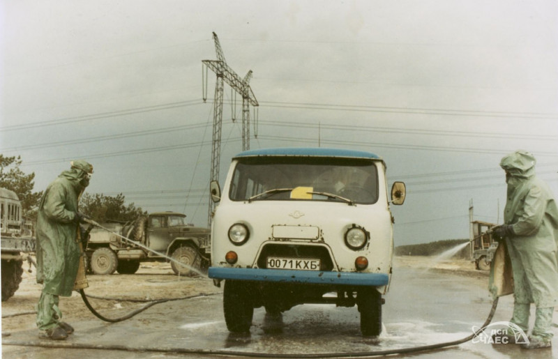 Чергова п’ятірка солдат готується на 30-60 секунд вийти на дах станції, щоб прибрати високорадіоактивні шматки графіту. Фото: Ігор Костін