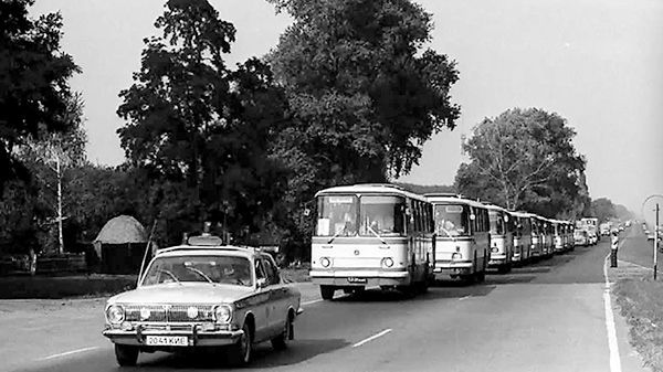 Для евакуації жителів Прип’яті прибули 1225 автобусів з Києва та області. Фото: Ігор Костін